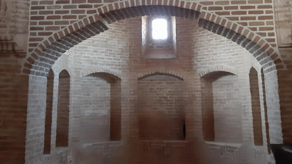 Η κεντρική αίθουσα είναι ορθογώνια και καλύπτεται από έναν θόλο, η εσωτερική διακόσμηση του οποίου δημιουργεί δεκαγωνικό σχήμα. Η κατασκευή αυτού του τύπου θόλου κατά την περίοδο των Κατζάρ (19ος αιώνας) είναι ιδιαίτερα εντυπωσιακή και διαφοροποιεί το κτίσμα από άλλα της ίδιας εποχής.